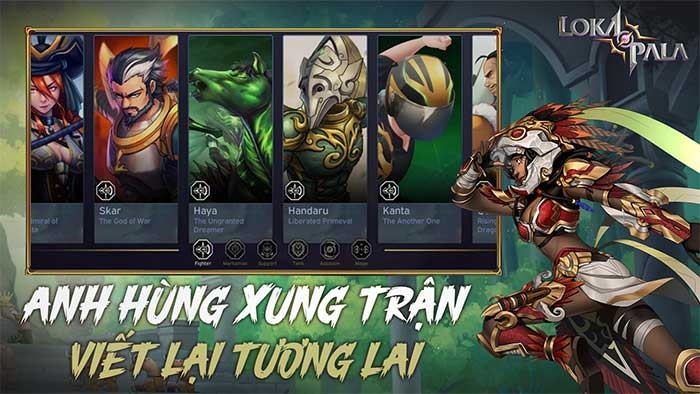 Việc nâng cấp kỹ năng cho nhân vật là yếu tố then chốt để gia tăng sức mạnh cho các anh hùng. Một điểm độc đáo của Lokapala nằm ở việc phần lớn các nhân vật, bao gồm cả trang phục, đều được lấy cảm hứng từ thần thoại và văn hóa đặc sắc của Indonesia.