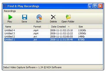 Để xem lại các đoạn phim hoặc hình ảnh đã ghi, chọn Recording trên menu. Một cửa sổ mới chứa danh sách các file đã được Debut ghi lại sẽ hiện ra. Bạn có thể: