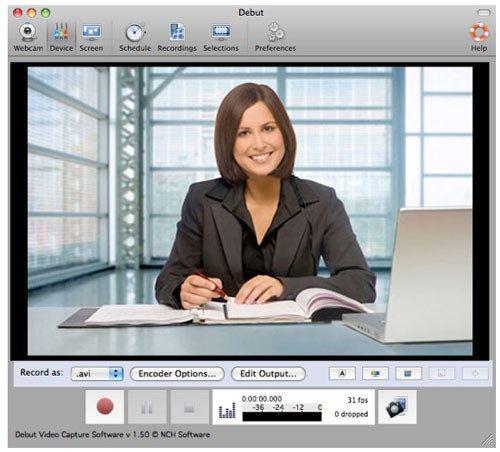 Mặc định, Debut sẽ quay video với định dạng avi và tốc độ 30 fps. Tuy nhiên, bạn có thể tùy chỉnh định dạng và tốc độ quay video bằng cách chọn Options từ Menu.