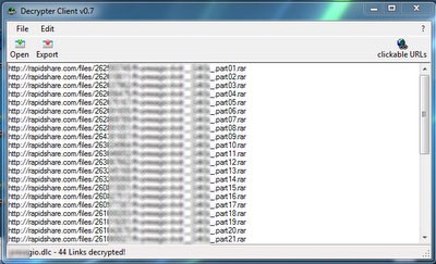 6) Chờ chương trình giải mã (khoảng 1-2 phút), sau đó tất cả các link Rapidshare trực tiếp sẽ được hiển thị trong cửa sổ chính.