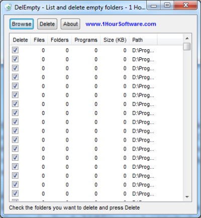 Việc sử dụng DelEmpty vô cùng dễ dàng. Đầu tiên, bạn chỉ cần nhấn vào nút Browse để chọn thư mục cần kiểm tra.