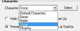 Khởi động lại phần mềm, mở cửa sổ Options, chọn tab Characters, tìm đến nhân vật vừa được bổ sung, nhấn Select để chọn làm nhân vật mặc định.
