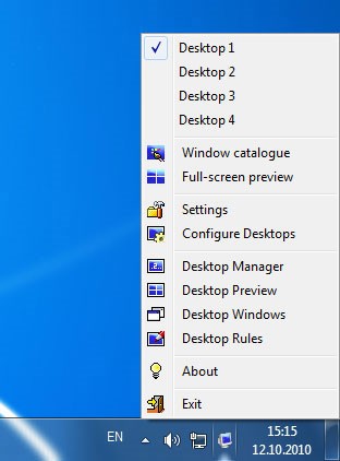 Để chuyển đổi giữa các Desktop ảo, bạn có thể nhấp vào biểu tượng Dexpot trên thanh thông báo hệ thống và chọn Desktop mong muốn (ví dụ: Desktop 1, 2, 3, 4...).