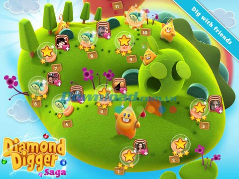 Diamond Digger Saga mang đến sự linh hoạt cho người chơi với khả năng chơi game offline hoặc kết nối trực tuyến với bạn bè. Bạn có thể liên kết tài khoản Facebook của mình để đồng bộ hóa tiến trình chơi trên các nền tảng khác, xin thêm lượt chơi hoặc gửi quà tặng đến những người bạn cùng tham gia. Số sao đạt được ở mỗi cấp độ sẽ phản ánh hiệu quả chơi của bạn, với 3 sao là kết quả tốt nhất. Hãy cùng theo dõi bản đồ game để biết ai đang dẫn đầu về điểm số và cấp độ!