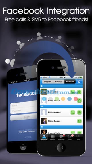 Ứng dụng Dingtone trên nền tảng iOS mang đến cho người dùng iPhone và iPad một phương thức liên lạc tích hợp, sử dụng kết nối 3G hoặc WiFi.