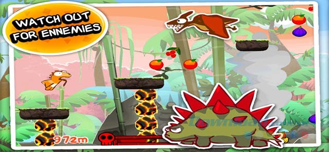 Dựa trên ý tưởng này, trò chơi chạy và nhảy bất tận Dino Rush của Nemoid đặt ra thử thách cho bạn: cố gắng cứu chú khủng long dễ thương bằng cách thu thập càng nhiều trái cây càng tốt. Bạn sẽ được khám phá 3 chế độ chơi và 5 thế giới thời tiền sử đầy màu sắc.
