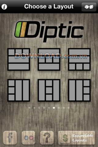 Diptic for iOS sở hữu tới 14 bộ lọc màu sắc khác nhau, cùng với các đường viền tròn và 52 bố cục tùy chỉnh, giúp người dùng thỏa sức sáng tạo và tạo nên những bức ảnh thu hút, đẹp mắt.