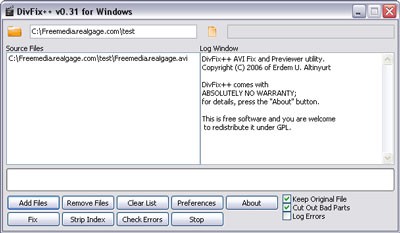 Phần mềm miễn phí DivFix++ giúp kiểm tra và sửa lỗi các file video định dạng AVI bằng cách tạo lại index của file.