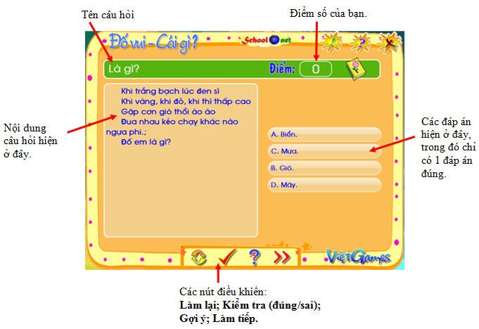 Để tham gia trò chơi, người chơi chỉ cần nhấp chuột vào một trong các đáp án có sẵn ở khung bên phải màn hình.