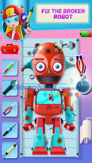Bạn có thể thay đổi diện mạo của robot bằng cách sơn lại phần thân, hoặc sử dụng mỏ hàn để kết nối các dây cáp. Sử dụng tia X để giải các câu đố vui nhộn và thay thế dây điện để đảm bảo chúng được lắp đặt đúng vị trí. Chăm sóc robot bằng cách lau sạch dầu mỡ bằng khăn giấy hoặc đo nhiệt độ bằng nhiệt kế thông minh. Với sự tận tâm và kinh nghiệm của một bác sĩ giỏi, những con robot này sẽ nhanh chóng phục hồi và hoạt động trở lại.