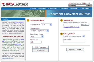 Document Converter eXPress là một dịch vụ được cung cấp bởi Neevia, được thiết kế để đáp ứng nhu cầu chuyển đổi tài liệu đa dạng của người dùng. Tính năng này tích hợp nhiều ứng dụng, cho phép bạn dễ dàng chuyển đổi các tập tin từ nhiều định dạng khác nhau sang định dạng PDF.