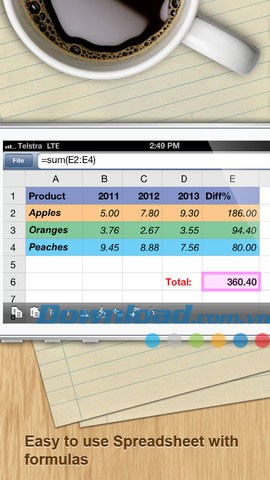 Với dung lượng chưa đến 30 MB, Documents Free là một bộ ứng dụng văn phòng gọn nhẹ lý tưởng cho iPhone. Ứng dụng này cho phép người dùng dễ dàng chỉnh sửa và quản lý các bảng tính cũng như các tệp văn bản trực tiếp trên iPhone.
