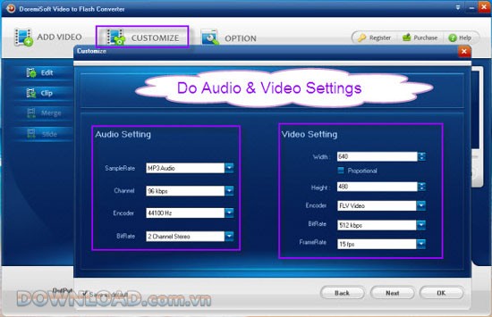 Bước 2: Tùy biến video Flash