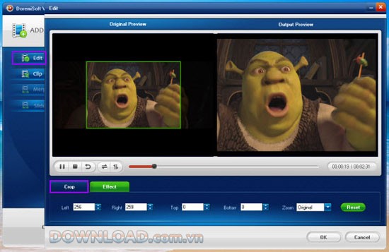 Nhấn vào nút “Edit” ở thanh bên trái để mở cửa sổ chỉnh sửa. Tại đây, bạn có thể thay đổi kích thước video và áp dụng các hiệu ứng đặc biệt để cải thiện video.