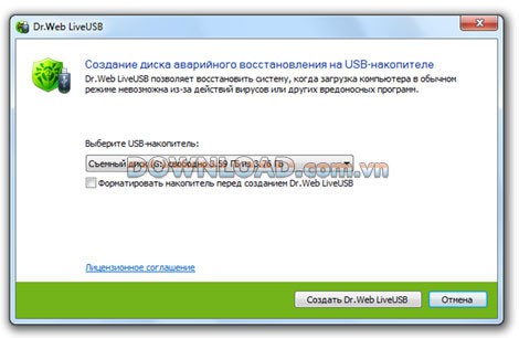 Ứng dụng Dr.Web LiveUSB cung cấp khả năng tạo một ổ đĩa flash USB khởi động. Ổ đĩa này tích hợp hệ điều hành Linux portable cùng với các công cụ phần mềm được xây dựng sẵn.