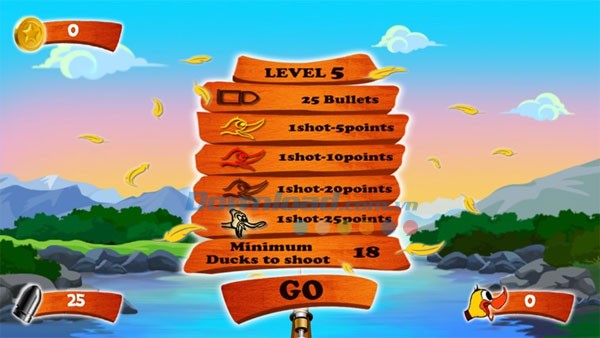 Để hoàn thành mỗi cấp độ, bạn cần bắn hạ tối thiểu một số lượng vịt nhất định và đạt được số điểm yêu cầu.
