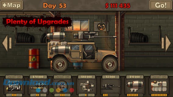 Quãng đường bạn vượt qua sẽ tương ứng với số tiền bạn nhận được để nâng cấp xe, chẳng hạn như lắp cưa máy, tăng kích cỡ bánh xe, gia tăng sức mạnh động cơ, mua thêm nhiên liệu hoặc đổi xe mới. Những lần chạy đầu tiên có thể khó khăn, vì bạn chỉ đi được một quãng đường ngắn do gặp nhiều chướng ngại vật và thây ma, cùng với chiếc xe thô sơ và ít nhiên liệu. Tuy nhiên, đừng nản lòng, đây là cơ hội để bạn làm quen với cơ chế điều khiển của game.