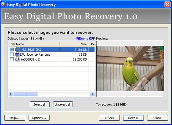 Sau khi phân tích, Easy Digital Photo Recovery sẽ cung cấp một danh sách đầy đủ các ảnh có khả năng phục hồi. Điểm đặc biệt là bạn có thể xem trước toàn bộ nội dung của ảnh trước khi quyết định thực hiện phục hồi.