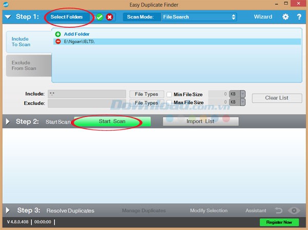 Tiếp theo, hãy nhấp vào tùy chọn Select Folders để chỉ định thư mục mà bạn muốn quét. Sau đó, nhấn Start Scan để bắt đầu quá trình quét thư mục đã chọn. Bạn cũng có thể đơn giản hóa thao tác bằng cách kéo và thả trực tiếp thư mục vào cửa sổ chương trình.
