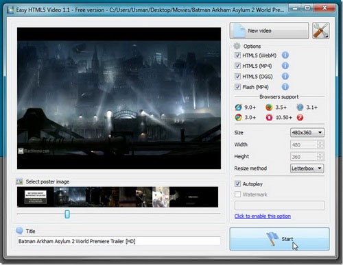 Với HTML5, việc xem video trực tiếp trong trình duyệt trở nên đơn giản hơn, không đòi hỏi người dùng phải cài đặt thêm bất kỳ plugin nào. Ứng dụng Easy HTML5 Video hỗ trợ người dùng chuyển đổi các video sang các định dạng tương thích với HTML5, bao gồm WebM, MP4 và OGG.