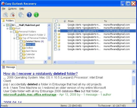 Công cụ này được thiết kế để phục hồi các tin nhắn đã xóa, tệp đính kèm và thông tin liên lạc từ các tệp PST của Microsoft Outlook. Nó sử dụng các thuật toán chuyên biệt để trích xuất tối đa số lượng tin nhắn, kể cả từ những tệp mà ứng dụng email thông thường không thể mở được.