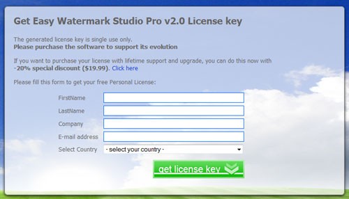 Việc sở hữu bản quyền miễn phí của chương trình rất đơn giản. Bạn chỉ cần truy cập trang khuyến mãi của chương trình, nhập đầy đủ thông tin cá nhân (Tên, họ lót, địa chỉ email,…), sau đó nhấn nút get license key để đăng ký mã sử dụng bản quyền.