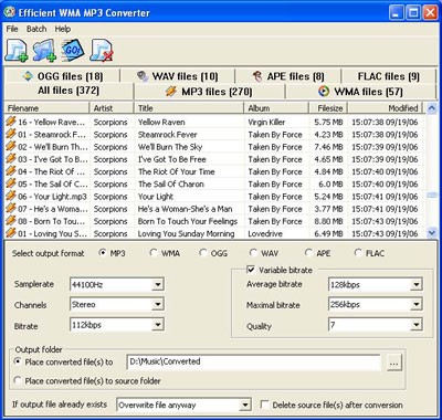 Đặc biệt, Efficient WMA MP3 Converter có khả năng xử lý hàng loạt tập tin audio và video với các định dạng khác nhau, chuyển đổi chúng về một định dạng audio thống nhất. Đồng thời, chương trình còn đảm bảo việc giữ lại toàn bộ thông tin chi tiết của các bài hát trong quá trình chuyển đổi sang định dạng đích.