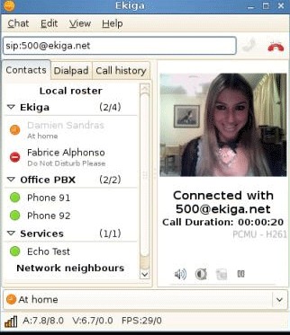 Ekiga, còn được biết đến với tên gọi GnomeMeeting, là một ứng dụng cho phép bạn thực hiện các cuộc gọi video với chất lượng âm thanh vượt trội. Hình ảnh hiển thị sắc nét, đạt kích thước khung hình và chất lượng tương đương với đĩa DVD.