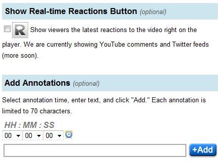 Tại mục Show Real-time Reactions Button, tích vào ô bên cạnh chữ R nếu bạn muốn hiển thị chức năng Real-time Reactions. Chức năng này sẽ hiển thị các bình luận từ YouTube và Twitter trực tiếp trên khung video.