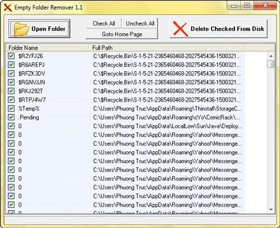 Sau khi lựa chọn, hãy nhấn vào nút tương ứng để bắt đầu quá trình xóa các thư mục rỗng được phát hiện.
