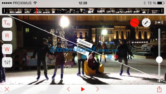 Quá trình ổn định hóa trong Emulsio for iOS được tích hợp hoàn toàn vào quy trình xử lý video của iOS.