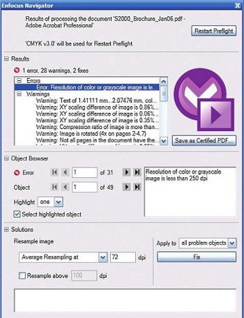 Lỗi thường gặp trong file PDF là các ký tự bị lỗi. Do đó, plugin này cung cấp cho Acrobat một chức năng mới "Convert text to outline" giúp bạn có thể thực hiện đối với từng ký tự bằng hộp thoại Enfocus Inspector hoặc áp dụng cho toàn bộ tài liệu thông qua hộp thoại Action List. Tuy nhiên, sau khi thực hiện, các ký tự trong tài liệu sẽ không thể chỉnh sửa về kiểu chữ hoặc kích thước như trước.