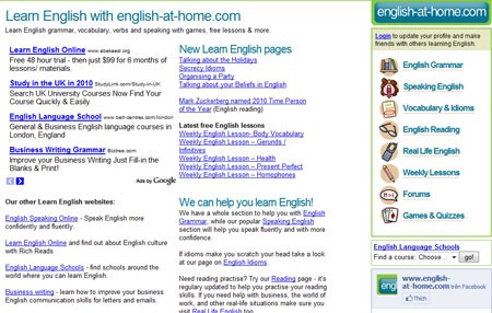 Việc tự học tiếng Anh tại nhà thông qua Internet đang trở nên ngày càng phổ biến. Số lượng các trang web cung cấp hướng dẫn và khóa học tiếng Anh trực tuyến liên tục tăng lên, đồng thời chất lượng cũng được cải thiện đáng kể. English-at-home.com là một trong những lựa chọn đáng chú ý.