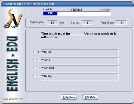 Xin giới thiệu đến bạn phần mềm hỗ trợ học tập môn tiếng Anh, English Test, được trang bị hơn 3.000 câu hỏi được biên soạn và sắp xếp theo nhiều chủ đề khác nhau như Thành ngữ, Giới từ, Sở hữu, Động từ To Be, So sánh, Phát âm, Từ đồng nghĩa, Từ vựng… dành cho cả ba cấp độ A, B và C.
