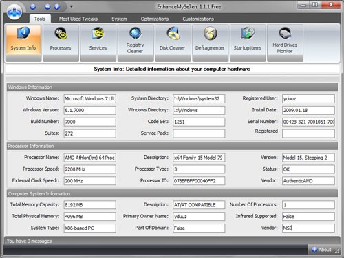 EnhanceMySe7en là một ứng dụng cung cấp bộ công cụ toàn diện, hỗ trợ tối ưu hóa hệ thống Windows 7. Phần mềm này giúp người dùng kiểm soát và quản lý nhiều khía cạnh khác nhau của máy tính, từ đó nâng cao hiệu năng hoạt động.