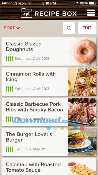 Ứng dụng cho phép bạn lưu trữ các công thức yêu thích và đồng bộ hóa danh sách yêu thích của mình với tài khoản Recipe Box trực tuyến trên Epicurious.com. Ngoài ra, bạn có thể dễ dàng tạo danh sách mua sắm, chia sẻ công thức và danh sách này với bạn bè và người thân.