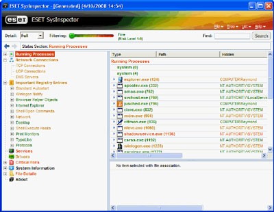 Tích hợp công nghệ Anti-Stealth, ESET SysInspector có thể phát hiện các đối tượng ẩn sâu trong hệ thống, bao gồm cả rootkit, tại các vị trí như MBR, registry, driver, dịch vụ và các lệnh thực thi.