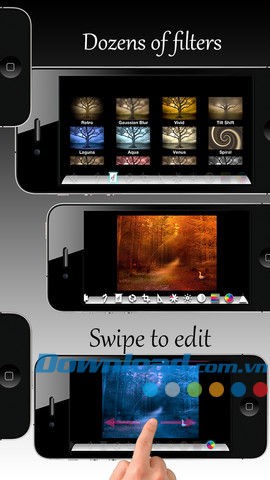 Chỉnh sửa ảnh dễ dàng thông qua các thao tác chạm đơn giản trên màn hình cảm ứng đa điểm của thiết bị iOS.