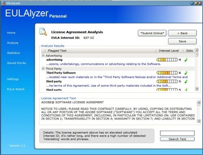 Khi người dùng tải xuống và tiến hành cài đặt một ứng dụng, EULAlyzer sẽ tiến hành phân tích kỹ lưỡng. Sau đó, chương trình sẽ đưa ra các cảnh báo nếu phát hiện phần mềm có chứa các thành phần nguy hại.
