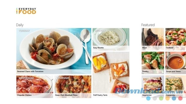 Tương tự như các ứng dụng khác cùng loại, Everyday Food hiển thị công thức nấu ăn theo dạng lưới, kèm theo hình ảnh minh họa sinh động cho từng món ăn.