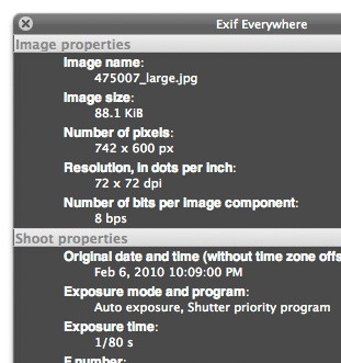 Khi đó, cửa sổ của Exif Everywhere sẽ ngay lập tức hiển thị. Bạn có thể nhả phím Ctrl để đóng cửa sổ hoặc giữ phím Ctrl và nhấn thêm phím Option để cố định cửa sổ trên màn hình.