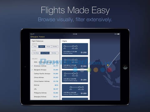 Ứng dụng tiện ích này giúp người dùng giảm thiểu chi phí đặt phòng khách sạn lên đến 60% nhờ các ưu đãi Expedia Mobile Exclusive. Đồng thời, bạn có thể sử dụng thiết bị iOS của mình để khám phá các lựa chọn chuyến bay tối ưu đến mọi điểm đến trên toàn cầu (tính năng đặt vé máy bay hiện tại chỉ khả dụng trên iPhone và iPod Touch).