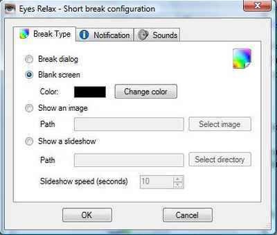 Trong hộp thoại Short Break Configuration, chọn tab Break Type để lựa chọn kiểu nhắc nhở: