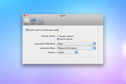 Lựa chọn điều khiển âm lượng hệ thống thay vì sử dụng âm lượng tích hợp của EyeTV.