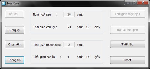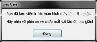 Eyes Care là một ứng dụng được thiết kế để hỗ trợ bảo vệ thị lực cho những ai thường xuyên sử dụng máy tính. Phần mềm này sẽ tự động nhắc nhở người dùng nghỉ ngơi định kỳ, giúp giảm thiểu căng thẳng cho đôi mắt.
