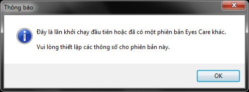 Dù bạn đã từng sử dụng phiên bản Beta hay đây là lần đầu tiên trải nghiệm Eyes Care, bạn sẽ nhận được thông báo khi khởi động chương trình: