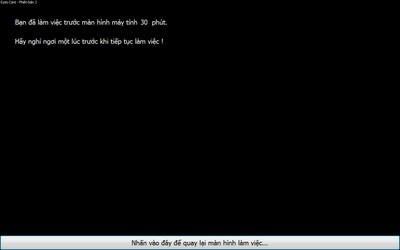 Việc chăm sóc và bảo vệ sức khỏe trước tác động của màn hình máy tính là vô cùng quan trọng. Đôi khi, do công việc hoặc sở thích cá nhân, chúng ta có thể quên đi việc nghỉ ngơi cần thiết để cơ thể phục hồi. Chính vì vậy, Eyes Care đã được phát triển để giải quyết vấn đề này!
