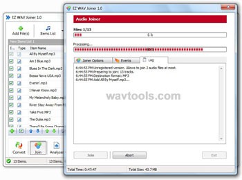 EZ WAV Joiner là công cụ hữu ích, cho phép bạn ghép nối, kết hợp nhiều định dạng tập tin âm thanh khác nhau như ACM, PCD, WAV, CDA, MP3, OGG, SND, VOX, WMA một cách nhanh chóng và đảm bảo chất lượng cao.