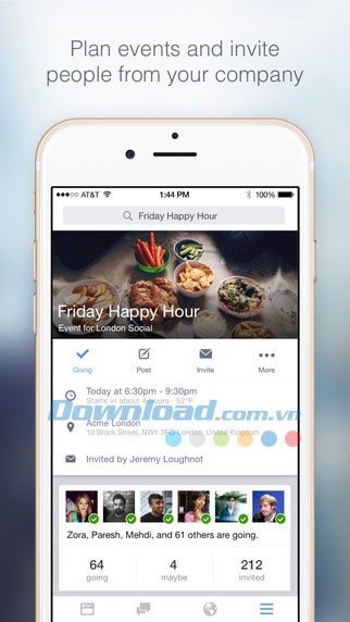 Sau khi hoàn tất việc thiết lập tài khoản công việc, bạn có thể truy cập trên thiết bị di động bằng cách tải ứng dụng Facebook at Work từ App Store miễn phí.
