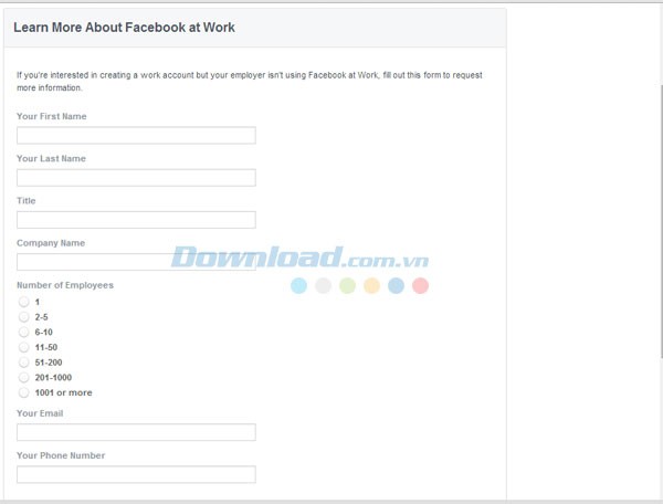 Bạn muốn tạo tài khoản Facebook cho công việc nhưng công ty bạn chưa sử dụng dịch vụ này? Hãy gửi email đề xuất đến Facebook để được hỗ trợ ngay lập tức.